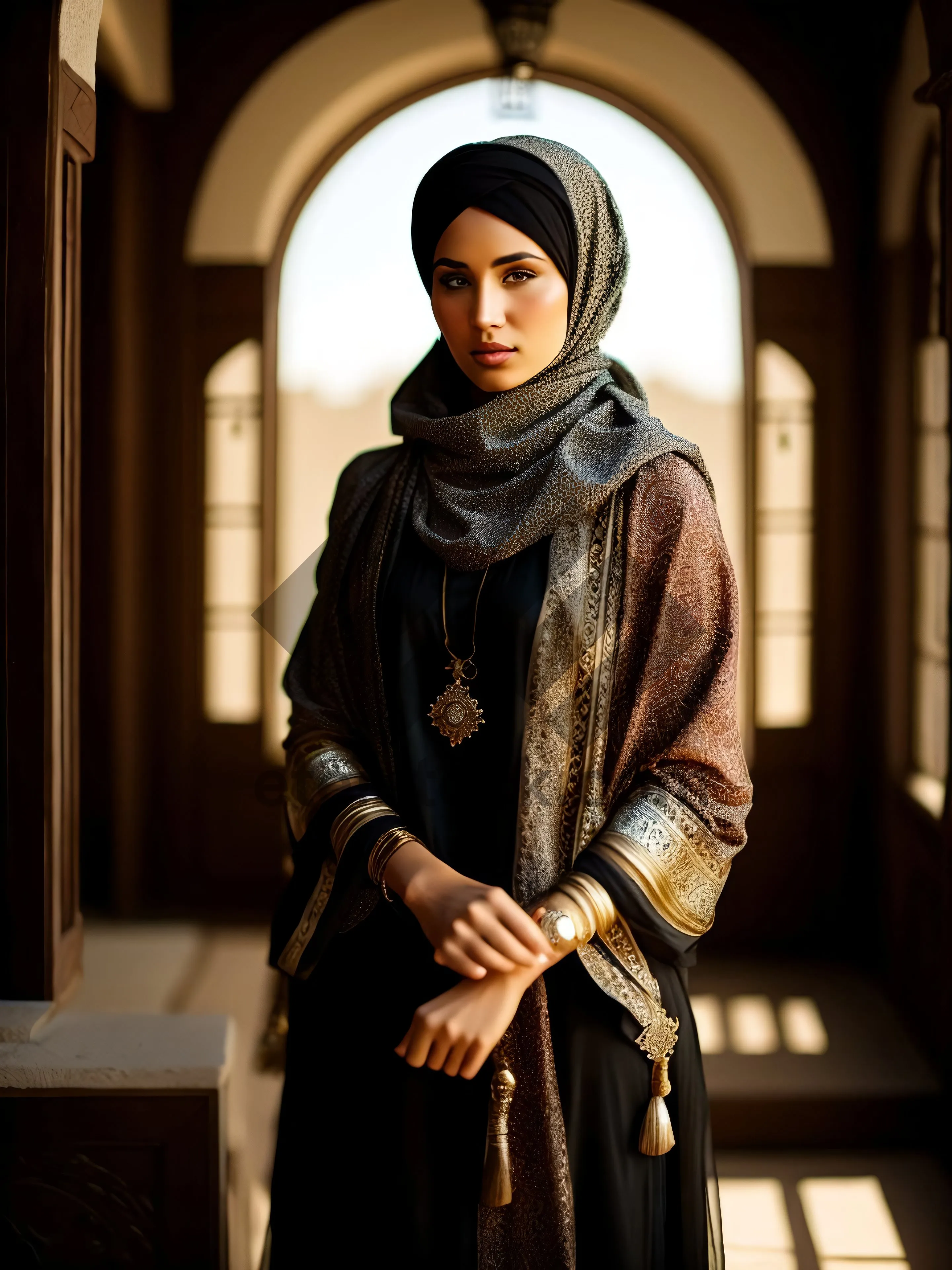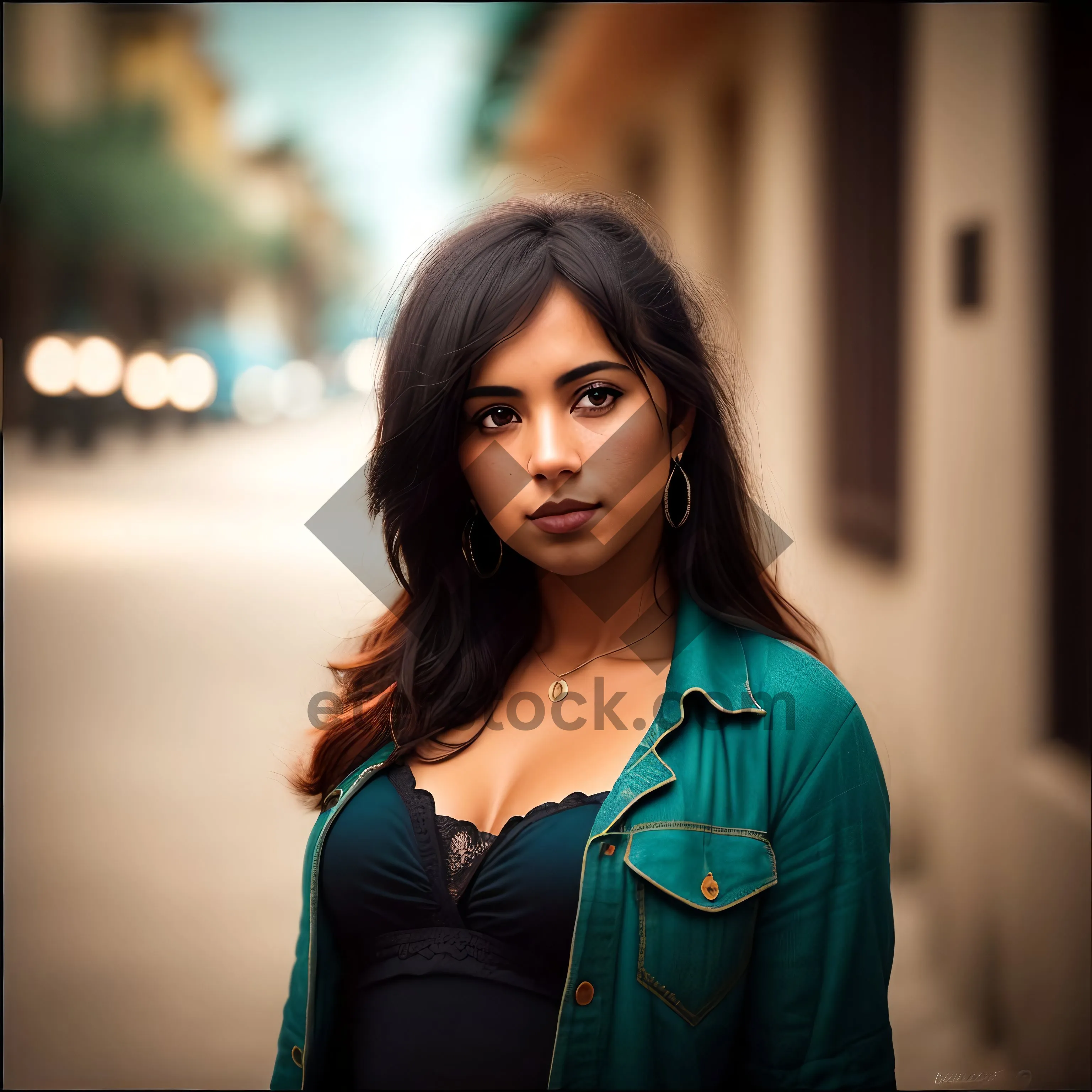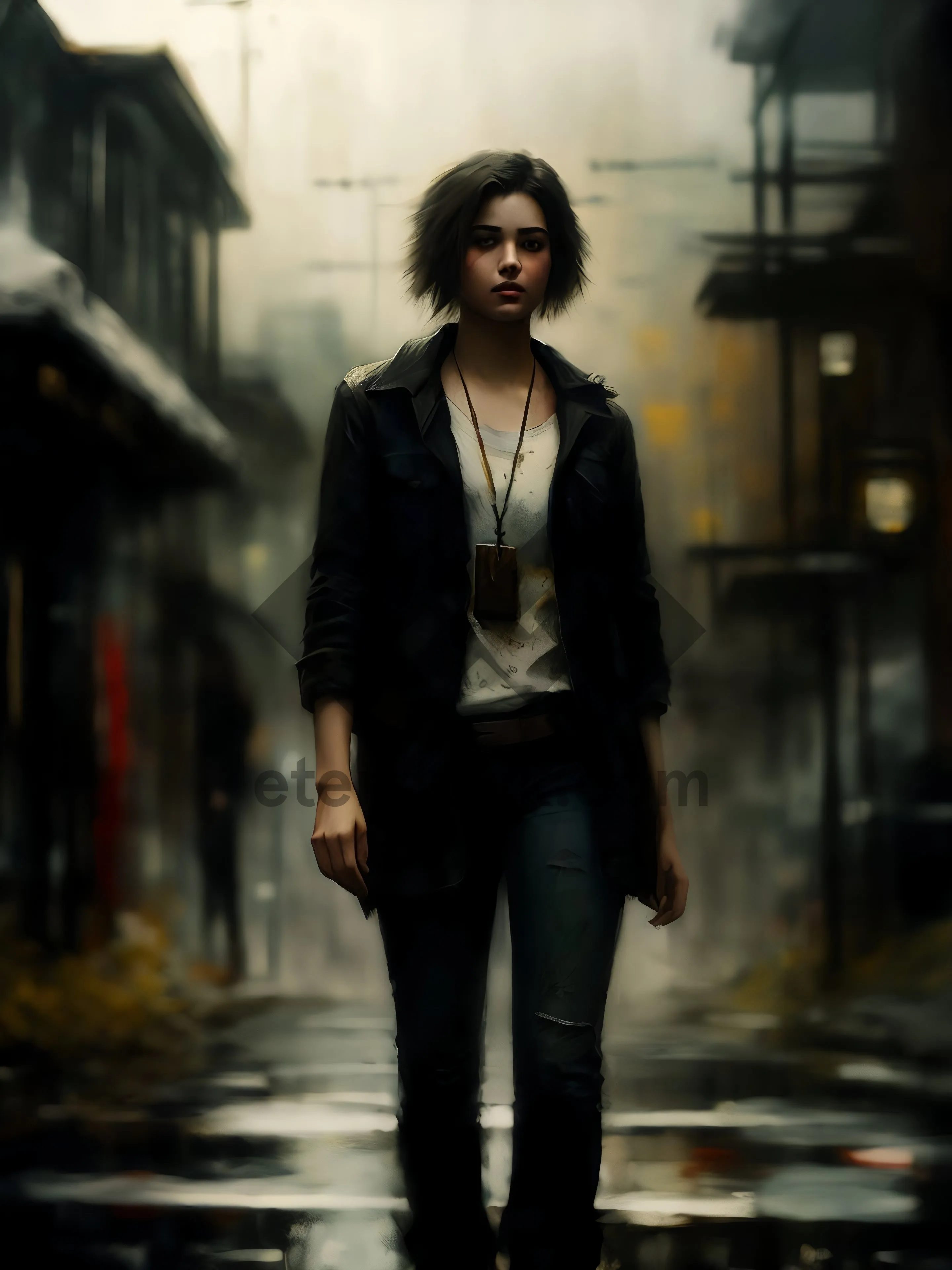 Stylish businesswoman in black leather coat, exuding confidence