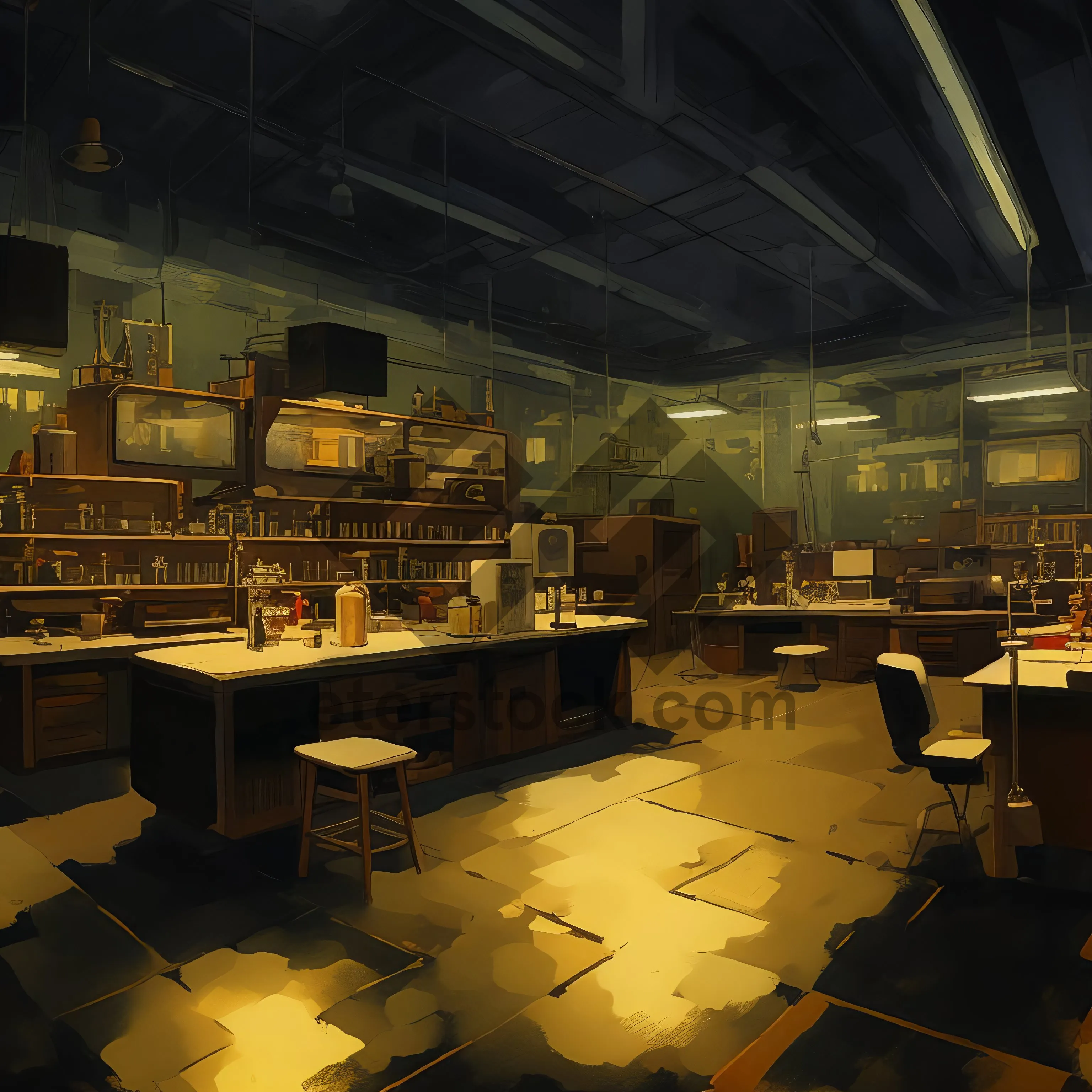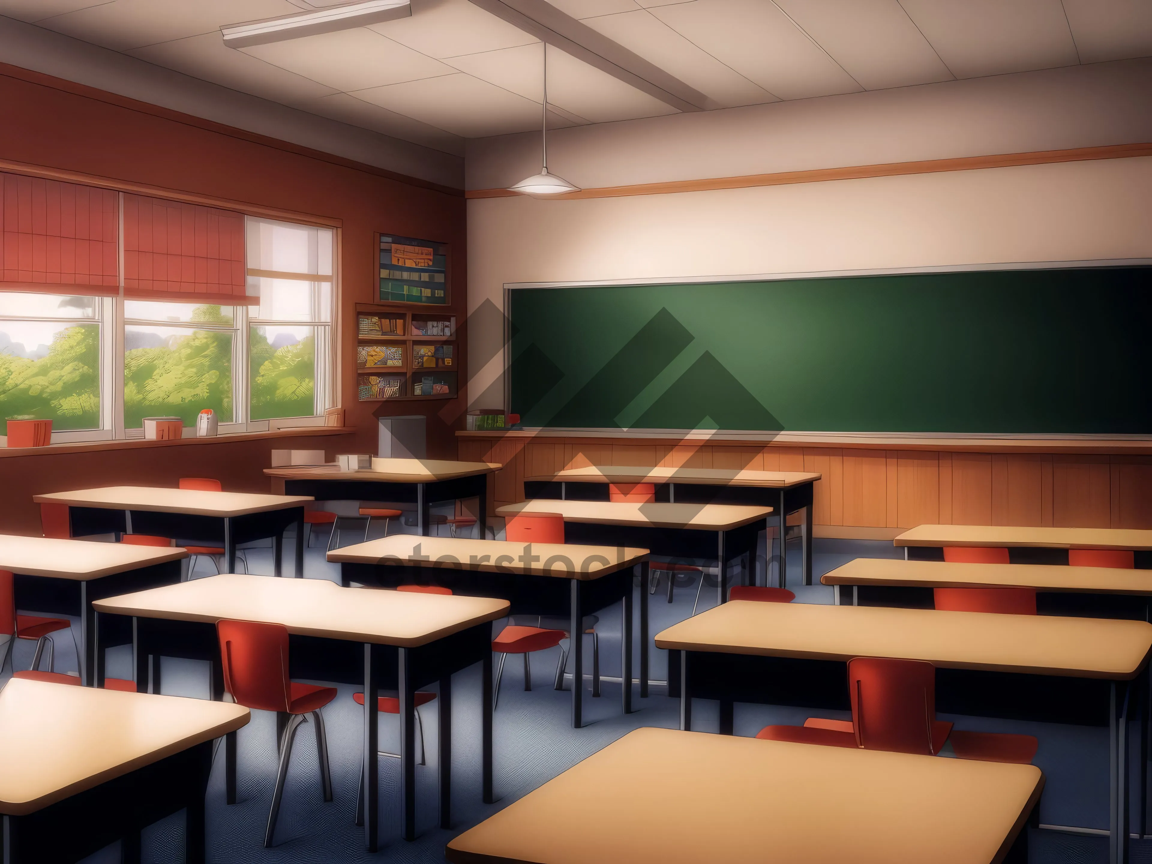 Modern Classroom: Stylish Furniture and Vibrant Lighting