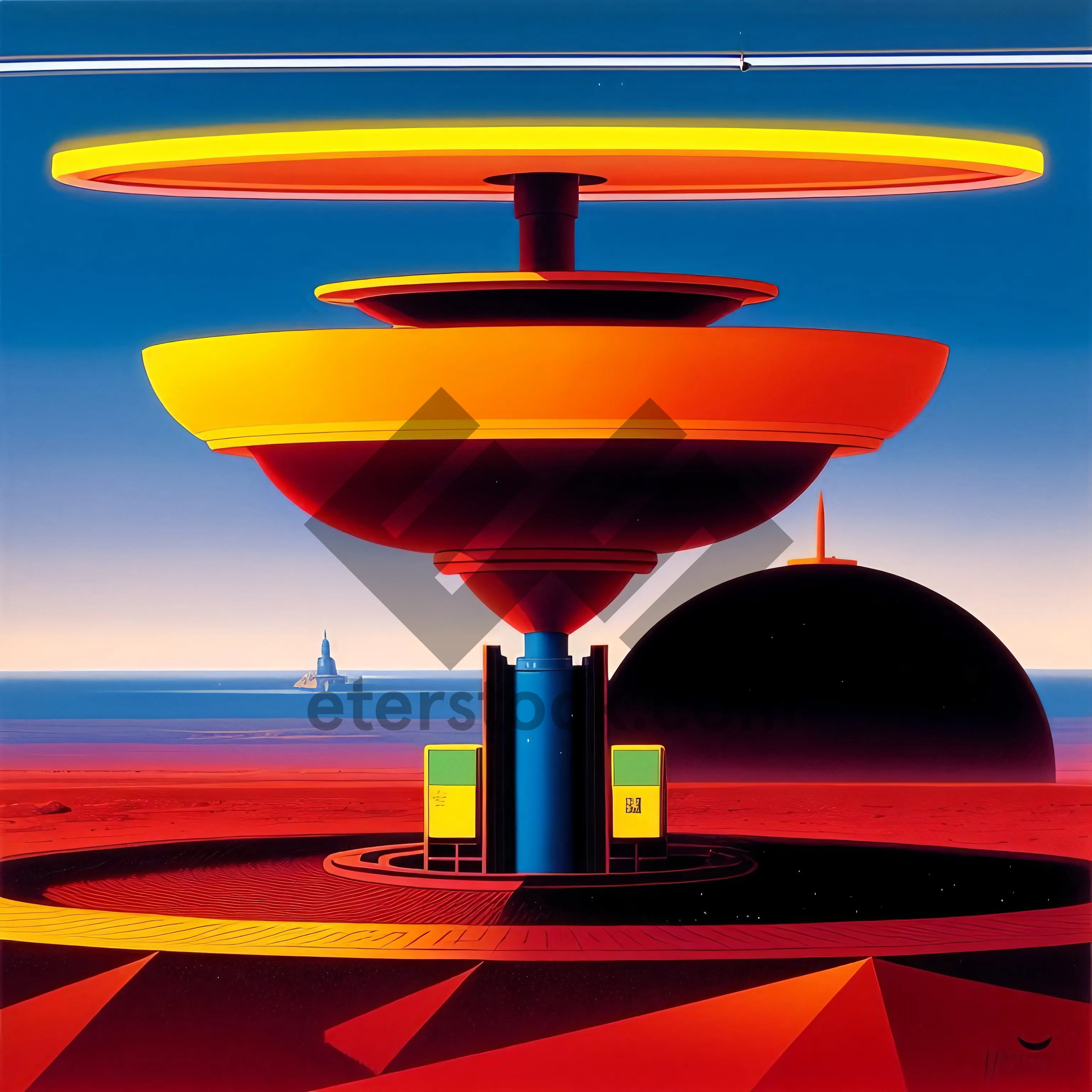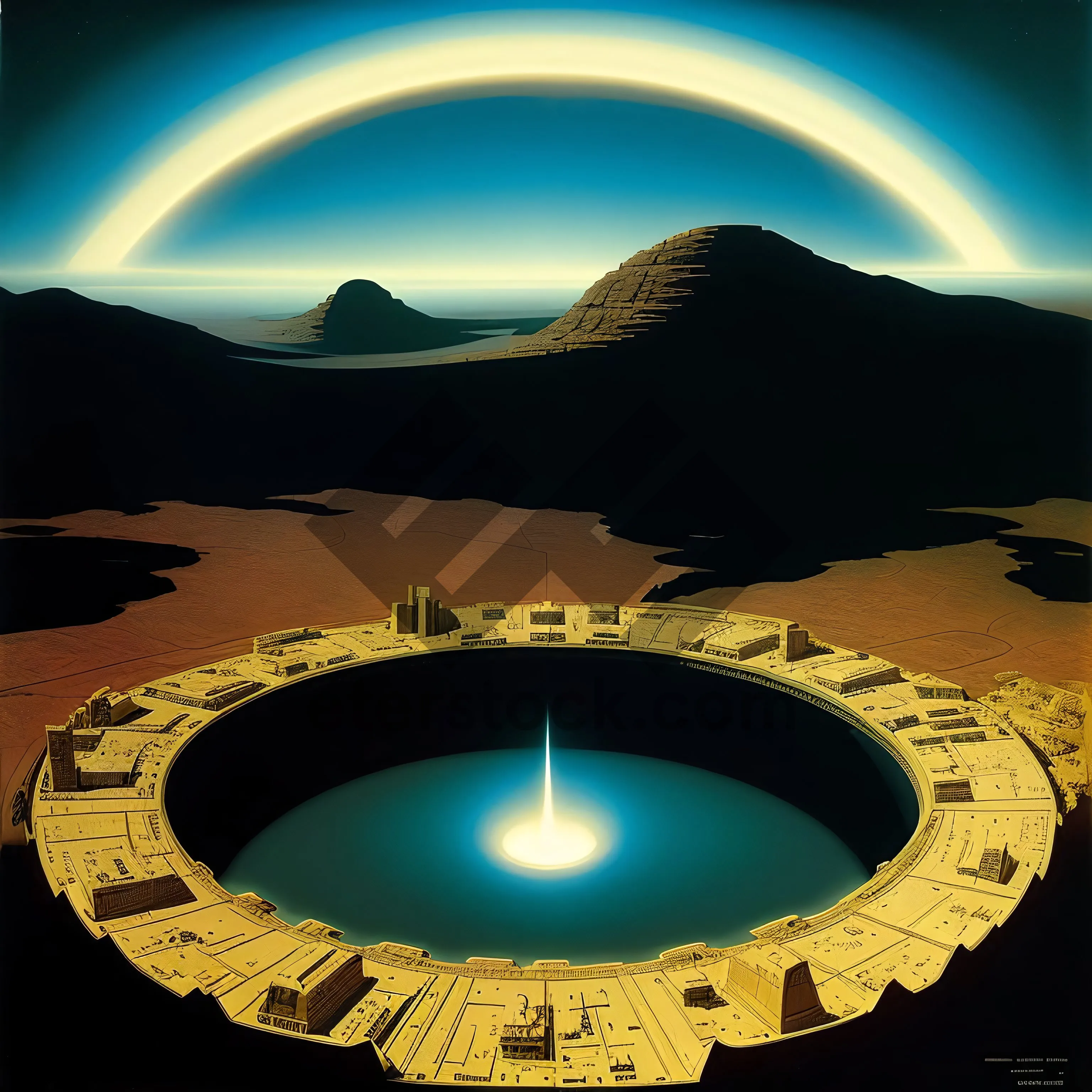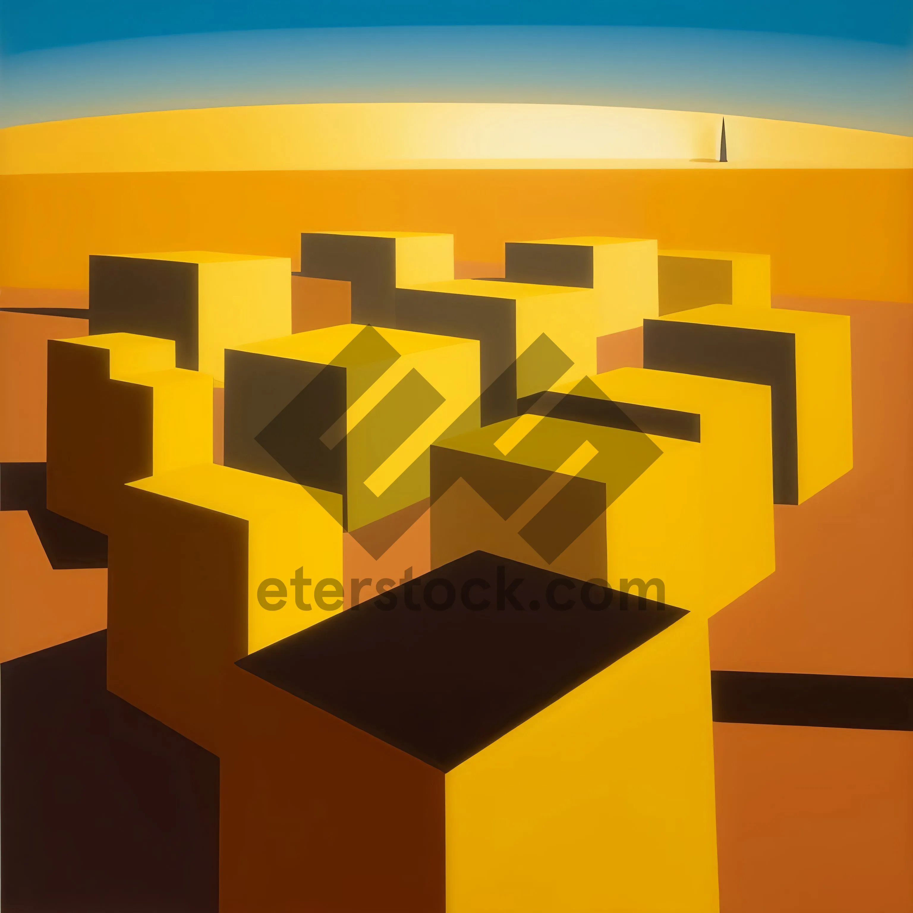 Symbolic pyramid design against a beautiful sky backdrop.