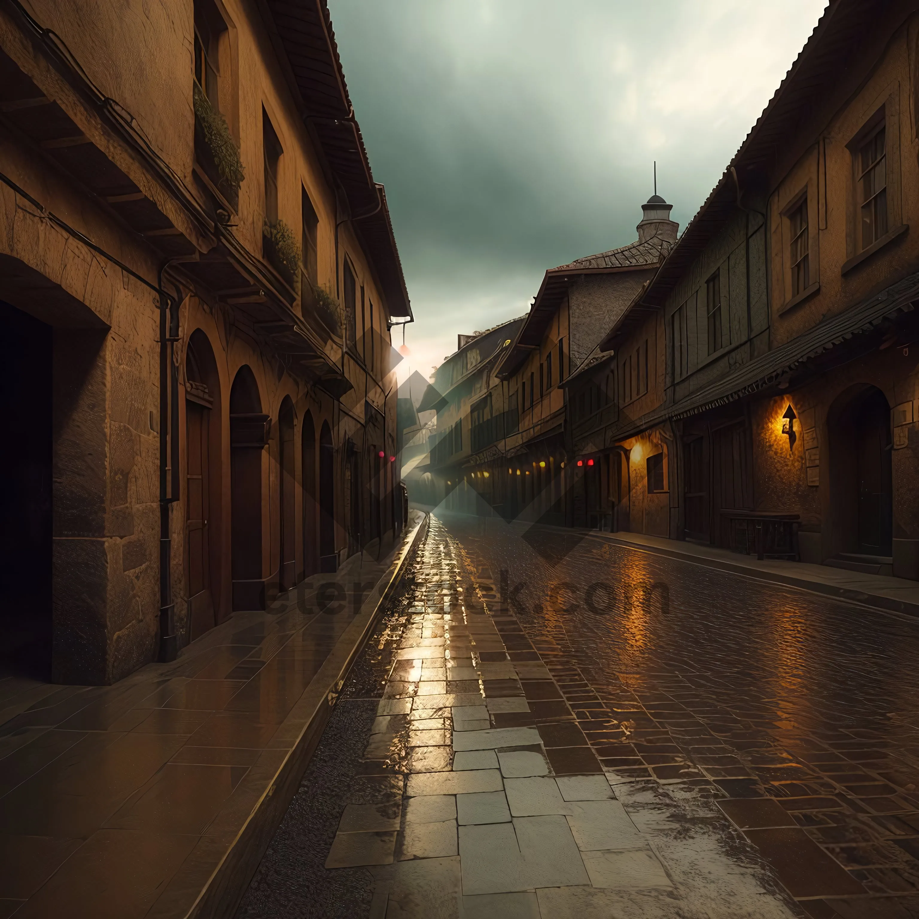 Picture of Ancient Canal Tower Overlooking Historic Street